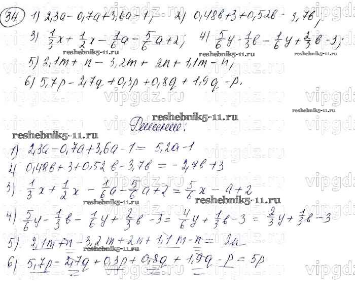 Готовая домашняя работа с ответами по Алгебре за 7 класс Колягин, Ткачева, Федорова, Шабунин Учебник УМК Просвещение 2012 ФГОС - Упражнения 34