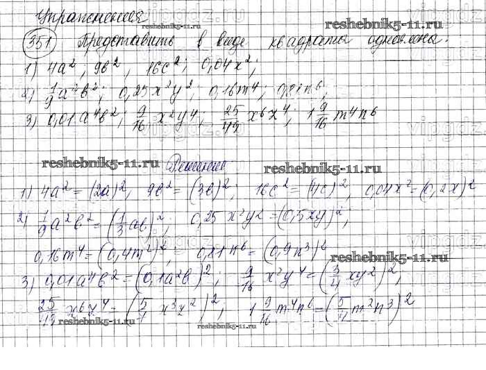 Готовая домашняя работа с ответами по Алгебре за 7 класс Колягин, Ткачева, Федорова, Шабунин Учебник УМК Просвещение 2012 ФГОС - Упражнения 351