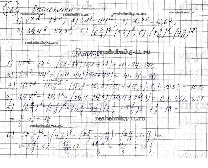 Готовая домашняя работа с ответами по Алгебре за 7 класс Колягин, Ткачева, Федорова, Шабунин Учебник УМК Просвещение 2012 ФГОС - Упражнения 363