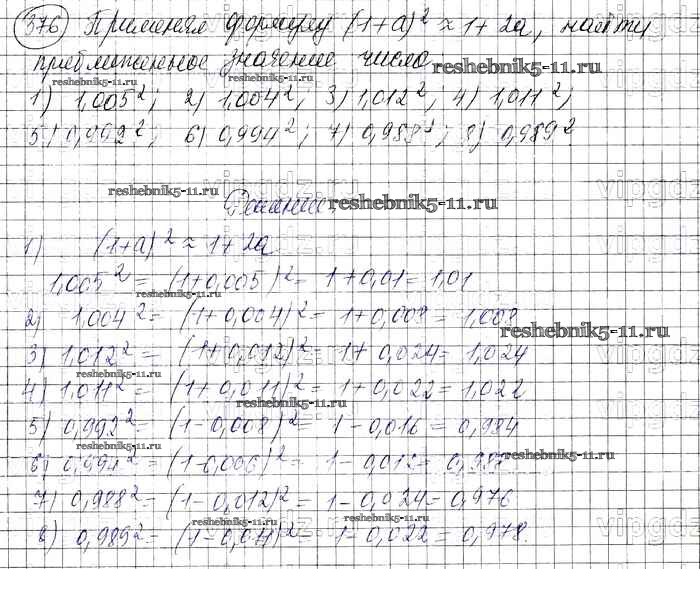 Готовая домашняя работа с ответами по Алгебре за 7 класс Колягин, Ткачева, Федорова, Шабунин Учебник УМК Просвещение 2012 ФГОС - Упражнения 376