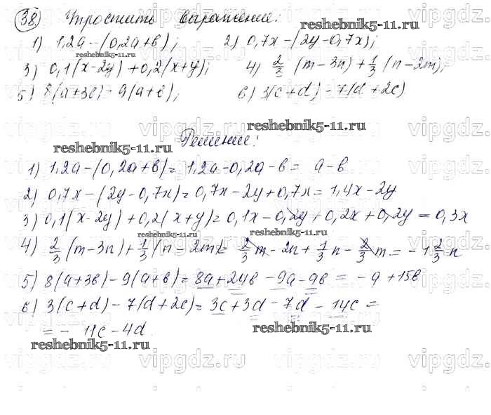 Готовая домашняя работа с ответами по Алгебре за 7 класс Колягин, Ткачева, Федорова, Шабунин Учебник УМК Просвещение 2012 ФГОС - Упражнения 38