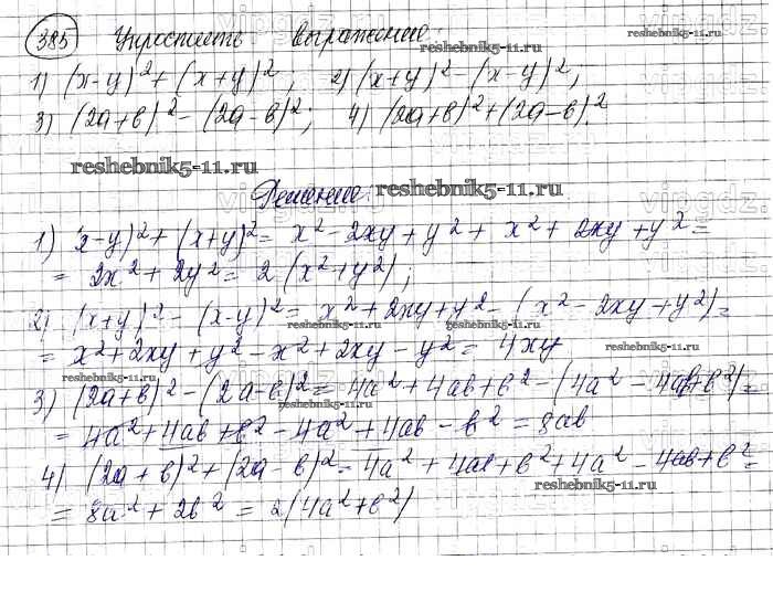 Готовая домашняя работа с ответами по Алгебре за 7 класс Колягин, Ткачева, Федорова, Шабунин Учебник УМК Просвещение 2012 ФГОС - Упражнения 385