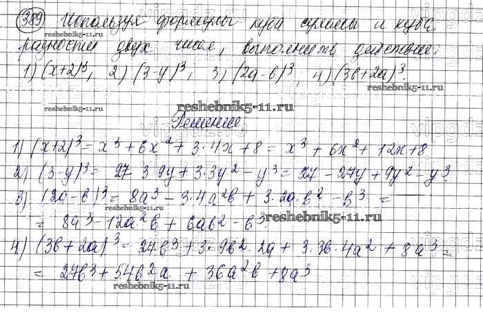 Готовая домашняя работа с ответами по Алгебре за 7 класс Колягин, Ткачева, Федорова, Шабунин Учебник УМК Просвещение 2012 ФГОС - Упражнения 389