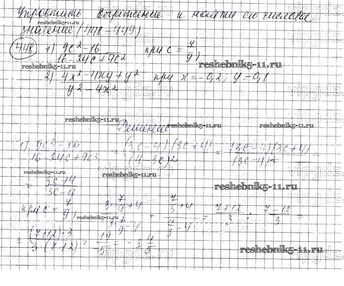 Готовая домашняя работа с ответами по Алгебре за 7 класс Колягин, Ткачева, Федорова, Шабунин Учебник УМК Просвещение 2012 ФГОС - Упражнения 448