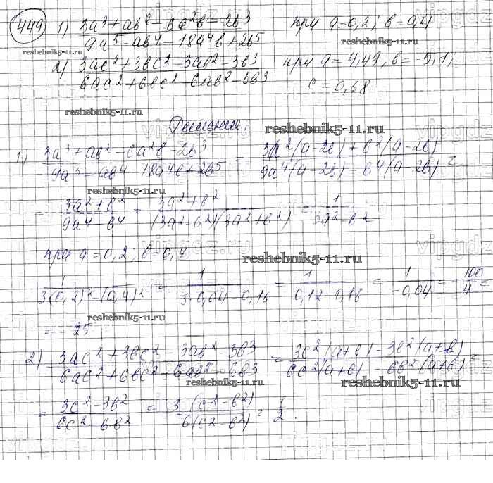 Готовая домашняя работа с ответами по Алгебре за 7 класс Колягин, Ткачева, Федорова, Шабунин Учебник УМК Просвещение 2012 ФГОС - Упражнения 449