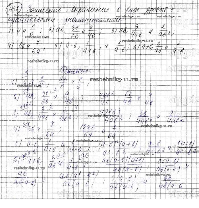 Готовая домашняя работа с ответами по Алгебре за 7 класс Колягин, Ткачева, Федорова, Шабунин Учебник УМК Просвещение 2012 ФГОС - Упражнения 457
