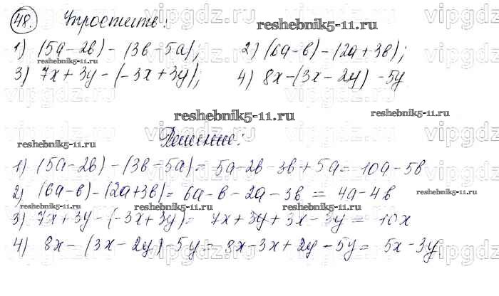 Готовая домашняя работа с ответами по Алгебре за 7 класс Колягин, Ткачева, Федорова, Шабунин Учебник УМК Просвещение 2012 ФГОС - Упражнения 48