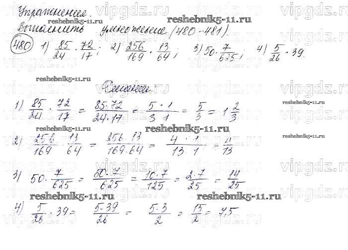 Готовая домашняя работа с ответами по Алгебре за 7 класс Колягин, Ткачева, Федорова, Шабунин Учебник УМК Просвещение 2012 ФГОС - Упражнения 480