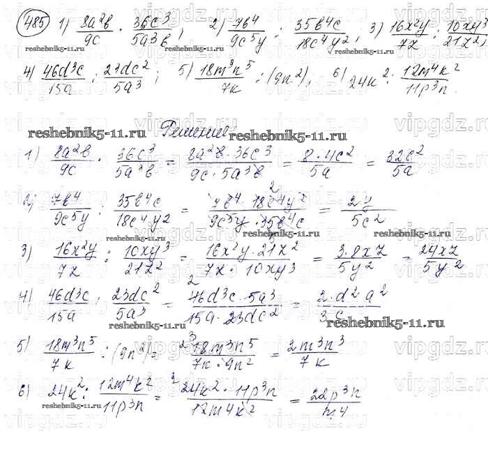 Готовая домашняя работа с ответами по Алгебре за 7 класс Колягин, Ткачева, Федорова, Шабунин Учебник УМК Просвещение 2012 ФГОС - Упражнения 485