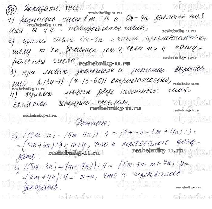 Готовая домашняя работа с ответами по Алгебре за 7 класс Колягин, Ткачева, Федорова, Шабунин Учебник УМК Просвещение 2012 ФГОС - Упражнения 50