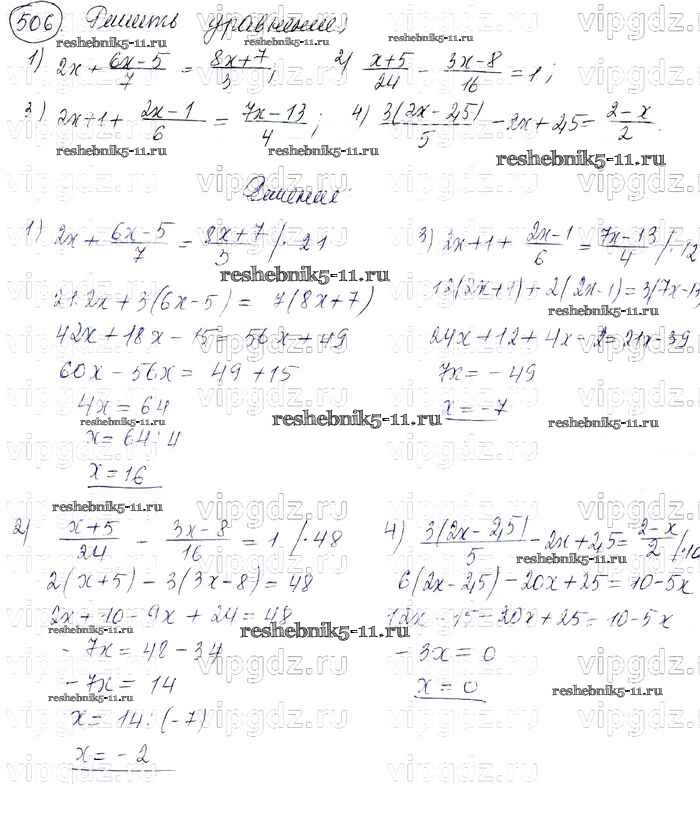 Готовая домашняя работа с ответами по Алгебре за 7 класс Колягин, Ткачева, Федорова, Шабунин Учебник УМК Просвещение 2012 ФГОС - Упражнения 506