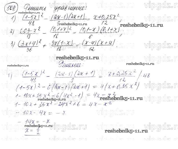 Готовая домашняя работа с ответами по Алгебре за 7 класс Колягин, Ткачева, Федорова, Шабунин Учебник УМК Просвещение 2012 ФГОС - Упражнения 508