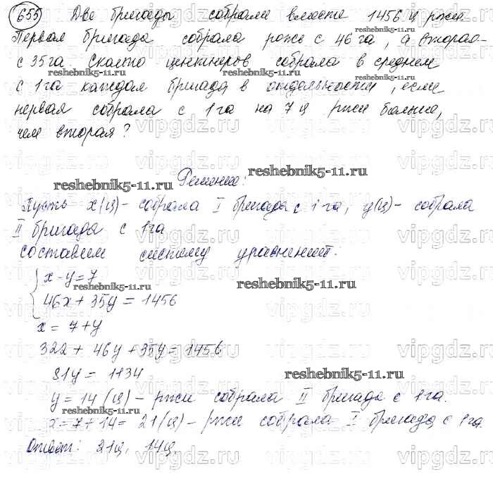 Готовая домашняя работа с ответами по Алгебре за 7 класс Колягин, Ткачева, Федорова, Шабунин Учебник УМК Просвещение 2012 ФГОС - Упражнения 655
