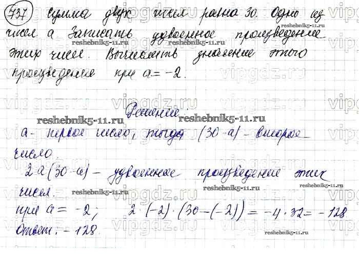 Готовая домашняя работа с ответами по Алгебре за 7 класс Колягин, Ткачева, Федорова, Шабунин Учебник УМК Просвещение 2012 ФГОС - Упражнения 737
