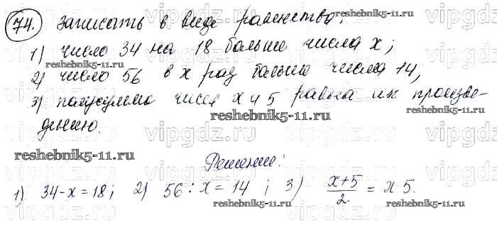 Готовая домашняя работа с ответами по Алгебре за 7 класс Колягин, Ткачева, Федорова, Шабунин Учебник УМК Просвещение 2012 ФГОС - Упражнения 74