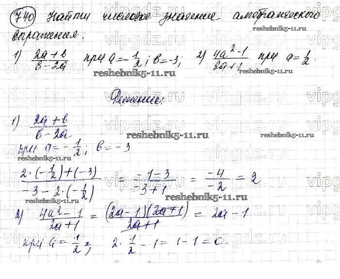Готовая домашняя работа с ответами по Алгебре за 7 класс Колягин, Ткачева, Федорова, Шабунин Учебник УМК Просвещение 2012 ФГОС - Упражнения 740