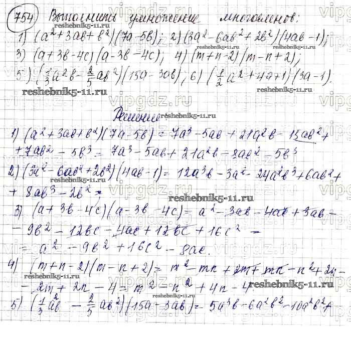 Готовая домашняя работа с ответами по Алгебре за 7 класс Колягин, Ткачева, Федорова, Шабунин Учебник УМК Просвещение 2012 ФГОС - Упражнения 754