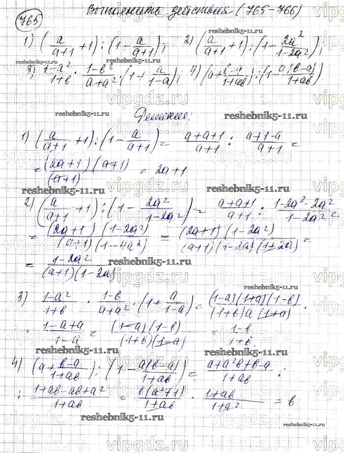 Готовая домашняя работа с ответами по Алгебре за 7 класс Колягин, Ткачева, Федорова, Шабунин Учебник УМК Просвещение 2012 ФГОС - Упражнения 765