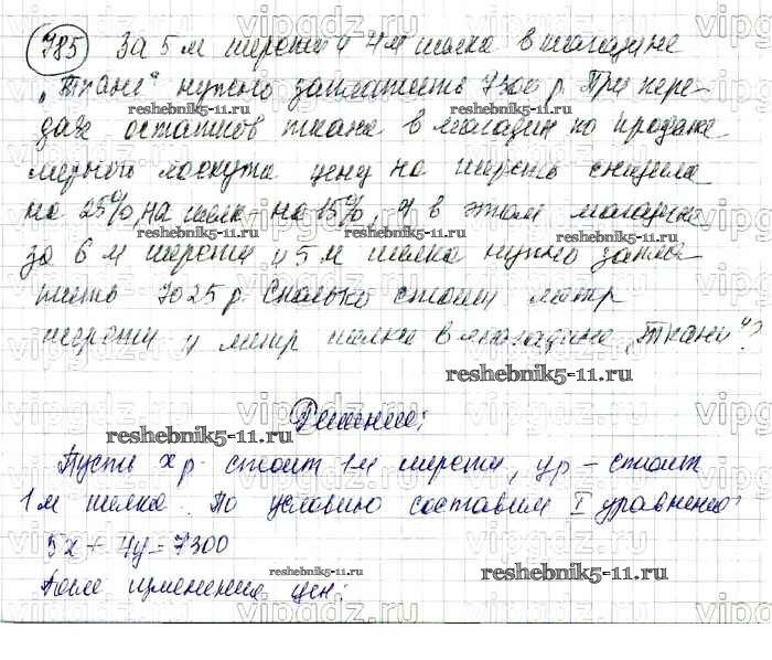 Готовая домашняя работа с ответами по Алгебре за 7 класс Колягин, Ткачева, Федорова, Шабунин Учебник УМК Просвещение 2012 ФГОС - Упражнения 785