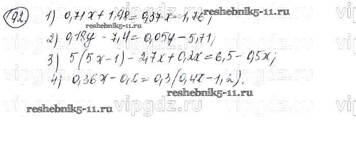 Готовая домашняя работа с ответами по Алгебре за 7 класс Колягин, Ткачева, Федорова, Шабунин Учебник УМК Просвещение 2012 ФГОС - Упражнения 92