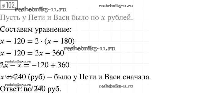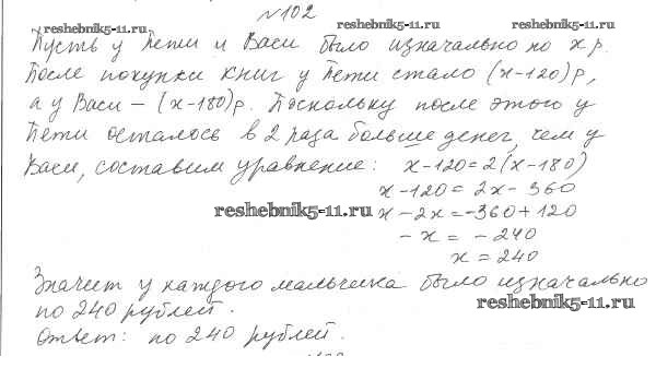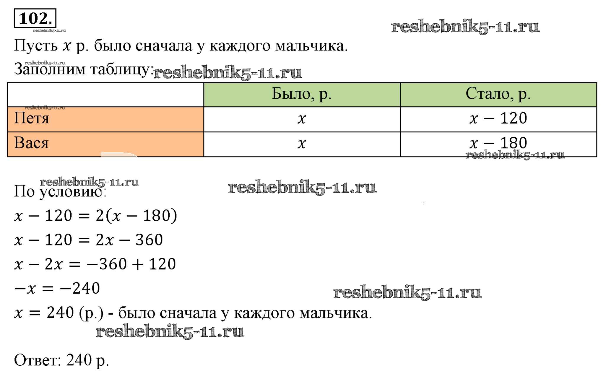 Готовая домашняя работа с ответами по Алгебре за 7 класс Мерзляк, Полонский, Якир Учебник Алгоритм успеха Базовый уровень Вентана-граф 2016 ФГОС - Упражнения 102