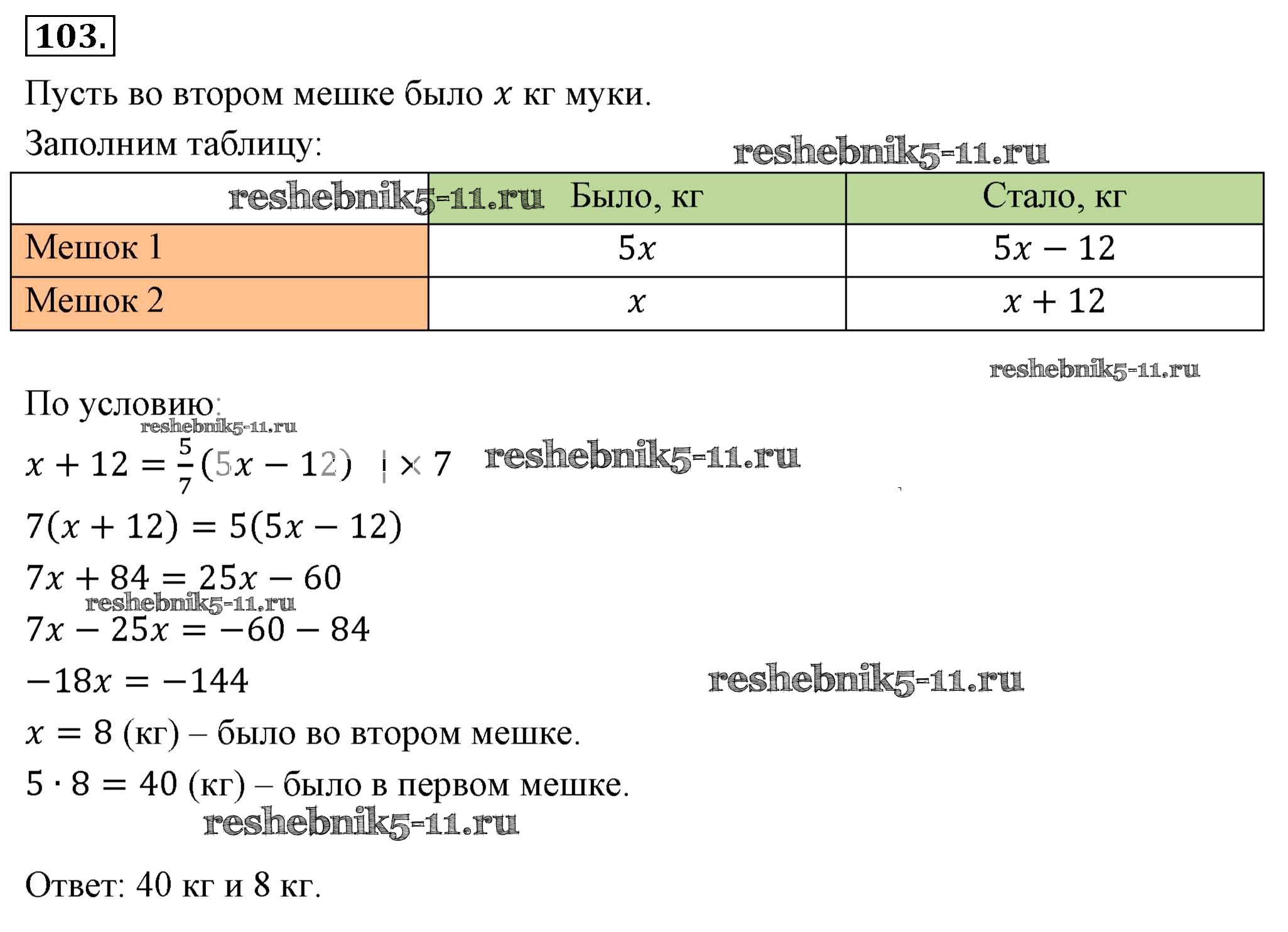 Готовая домашняя работа с ответами по Алгебре за 7 класс Мерзляк, Полонский, Якир Учебник Алгоритм успеха Базовый уровень Вентана-граф 2016 ФГОС - Упражнения 103
