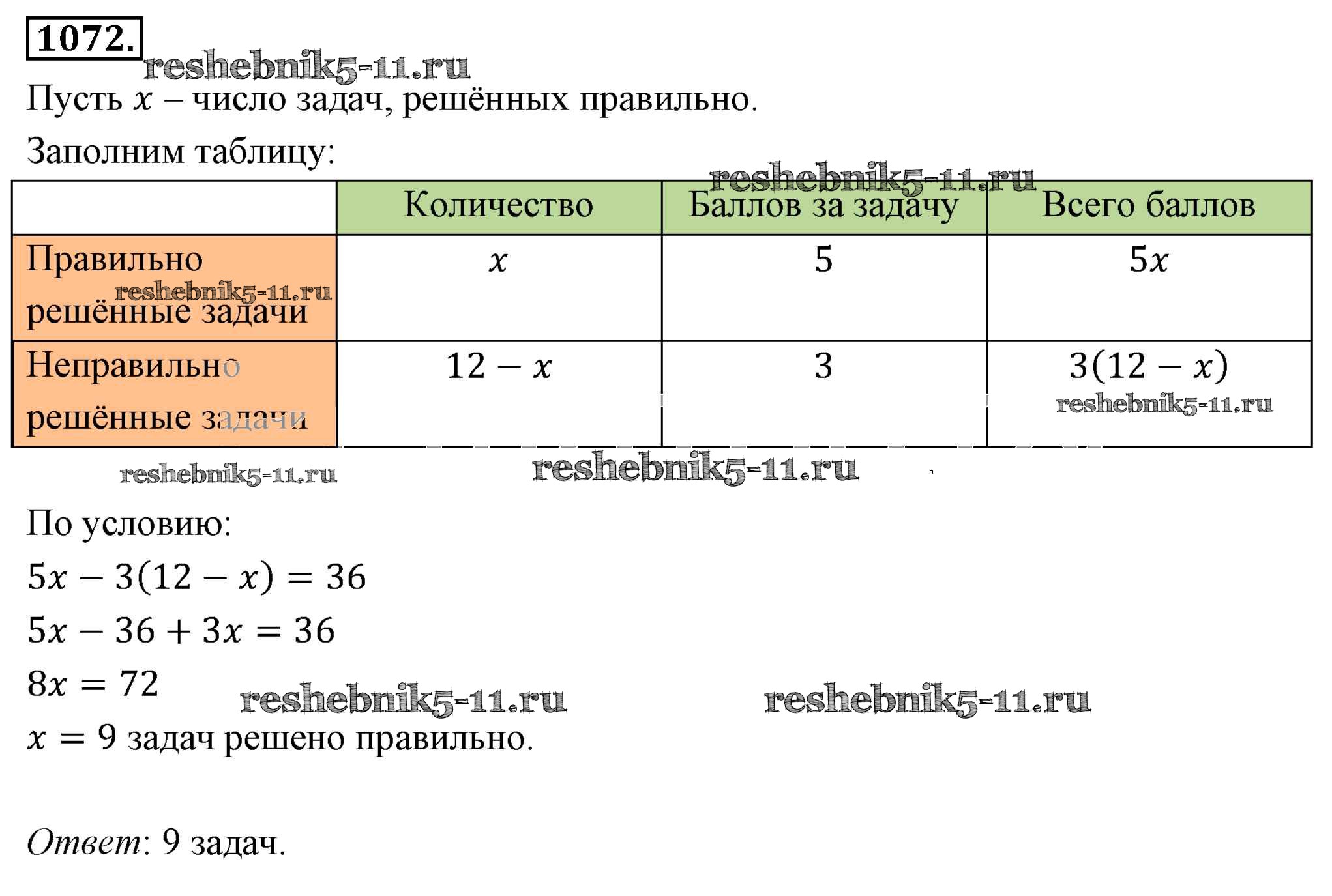Готовая домашняя работа с ответами по Алгебре за 7 класс Мерзляк, Полонский, Якир Учебник Алгоритм успеха Базовый уровень Вентана-граф 2016 ФГОС - Упражнения 1072