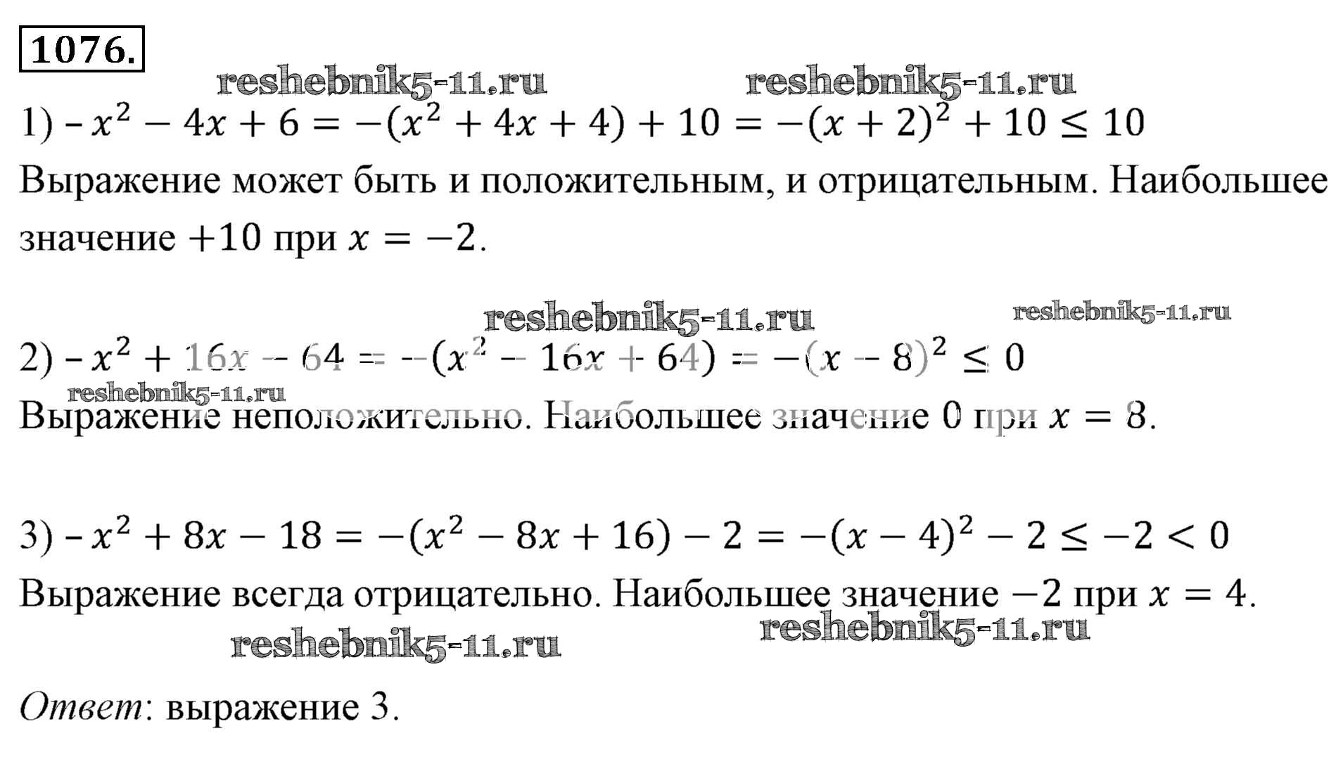 Готовая домашняя работа с ответами по Алгебре за 7 класс Мерзляк, Полонский, Якир Учебник Алгоритм успеха Базовый уровень Вентана-граф 2016 ФГОС - Упражнения 1076
