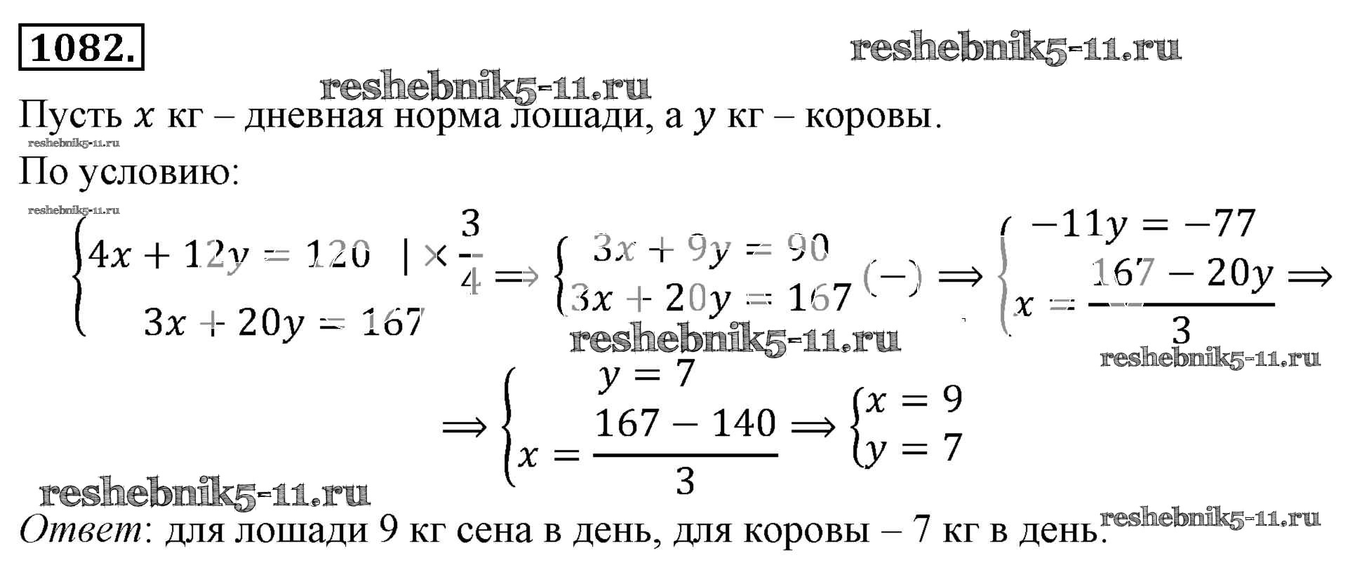Готовая домашняя работа с ответами по Алгебре за 7 класс Мерзляк, Полонский, Якир Учебник Алгоритм успеха Базовый уровень Вентана-граф 2016 ФГОС - Упражнения 1082