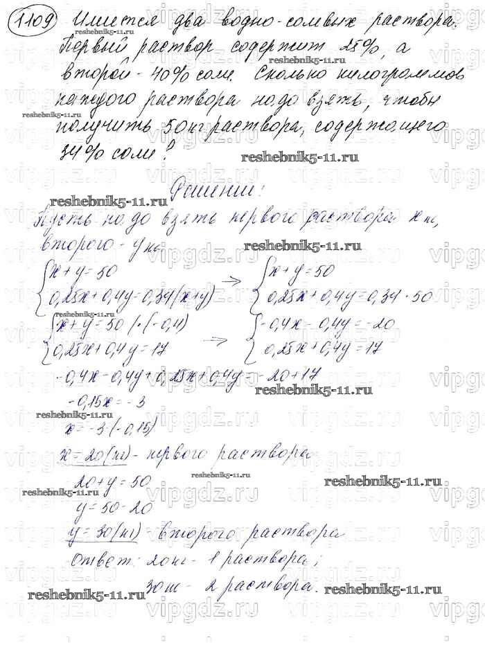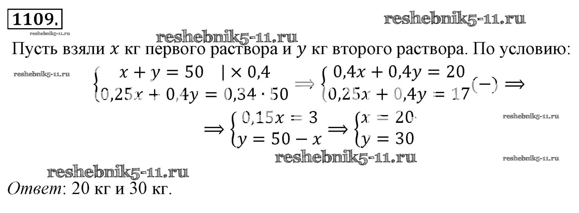 Готовая домашняя работа с ответами по Алгебре за 7 класс Мерзляк, Полонский, Якир Учебник Алгоритм успеха Базовый уровень Вентана-граф 2016 ФГОС - Упражнения 1109