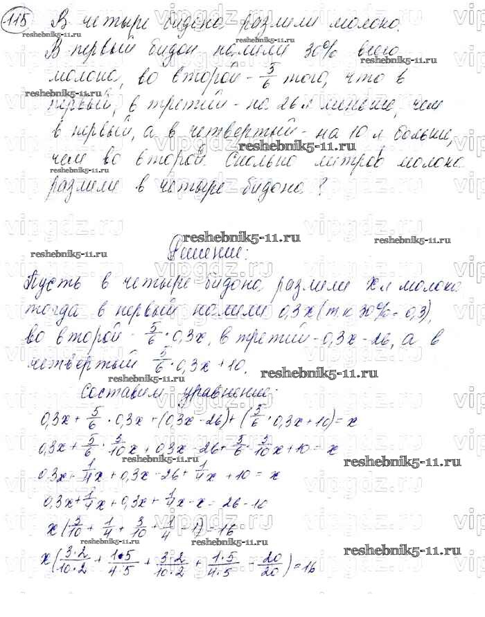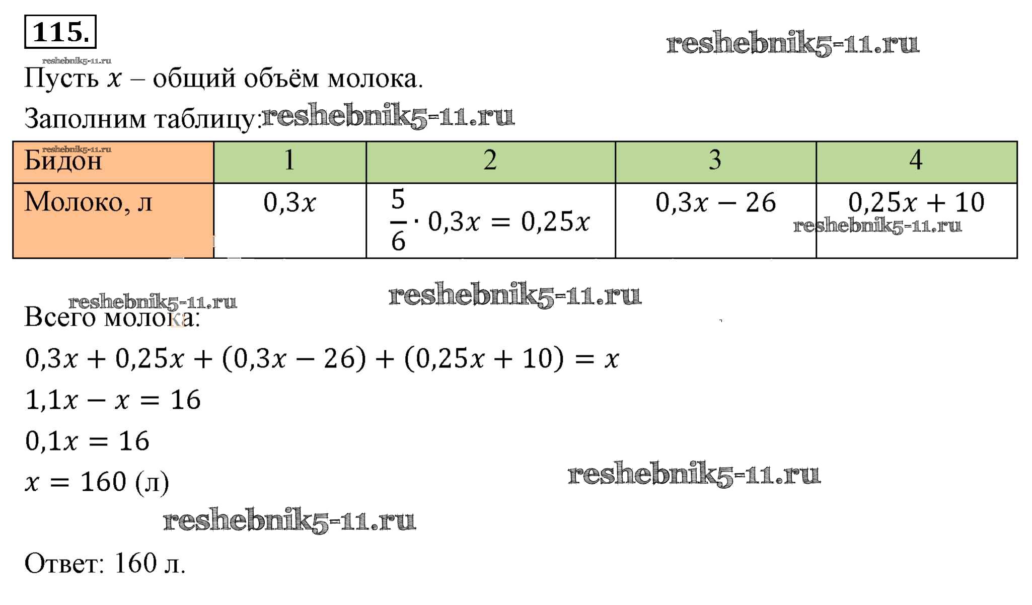 Готовая домашняя работа с ответами по Алгебре за 7 класс Мерзляк, Полонский, Якир Учебник Алгоритм успеха Базовый уровень Вентана-граф 2016 ФГОС - Упражнения 115