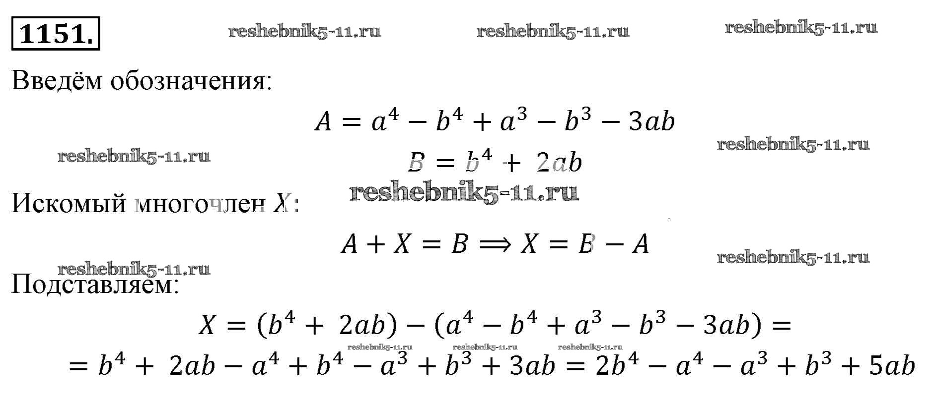 Готовая домашняя работа с ответами по Алгебре за 7 класс Мерзляк, Полонский, Якир Учебник Алгоритм успеха Базовый уровень Вентана-граф 2016 ФГОС - Упражнения 1151