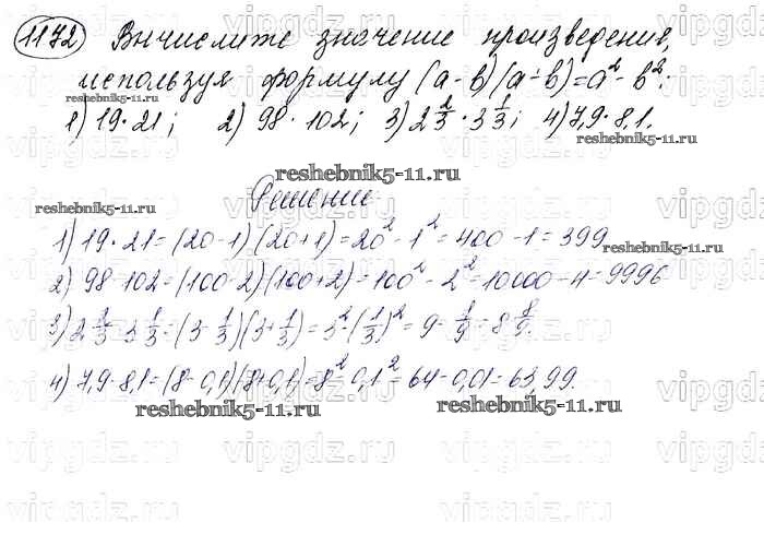 Готовая домашняя работа с ответами по Алгебре за 7 класс Мерзляк, Полонский, Якир Учебник Алгоритм успеха Базовый уровень Вентана-граф 2016 ФГОС - Упражнения 1172