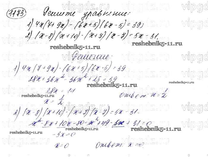 Готовая домашняя работа с ответами по Алгебре за 7 класс Мерзляк, Полонский, Якир Учебник Алгоритм успеха Базовый уровень Вентана-граф 2016 ФГОС - Упражнения 1173