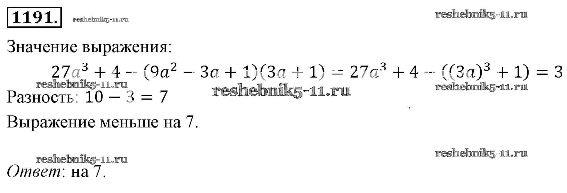 Готовая домашняя работа с ответами по Алгебре за 7 класс Мерзляк, Полонский, Якир Учебник Алгоритм успеха Базовый уровень Вентана-граф 2016 ФГОС - Упражнения 1191