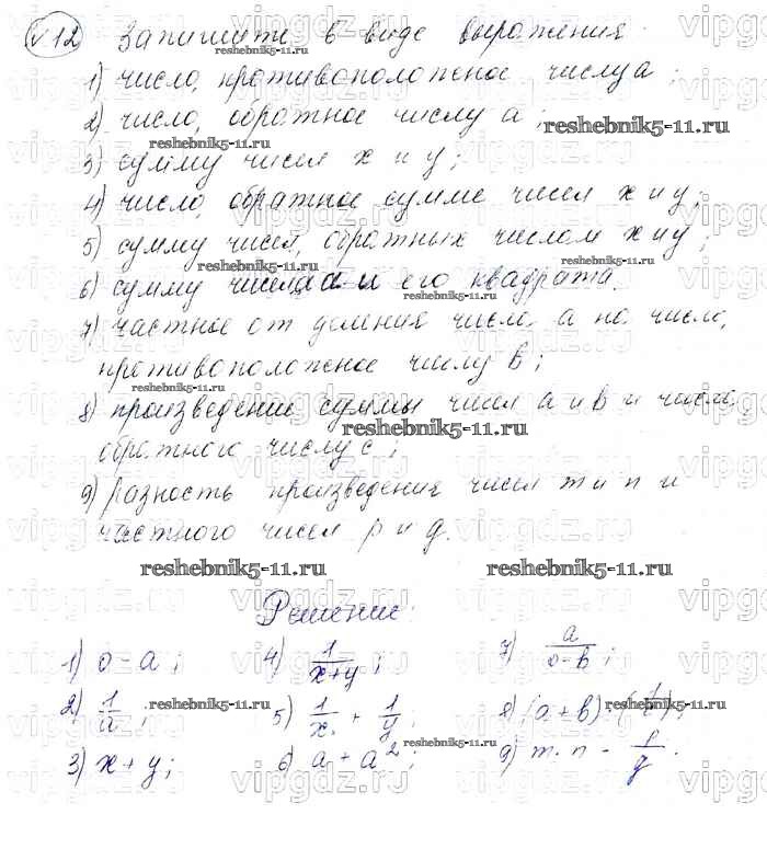 Готовая домашняя работа с ответами по Алгебре за 7 класс Мерзляк, Полонский, Якир Учебник Алгоритм успеха Базовый уровень Вентана-граф 2016 ФГОС - Упражнения 12