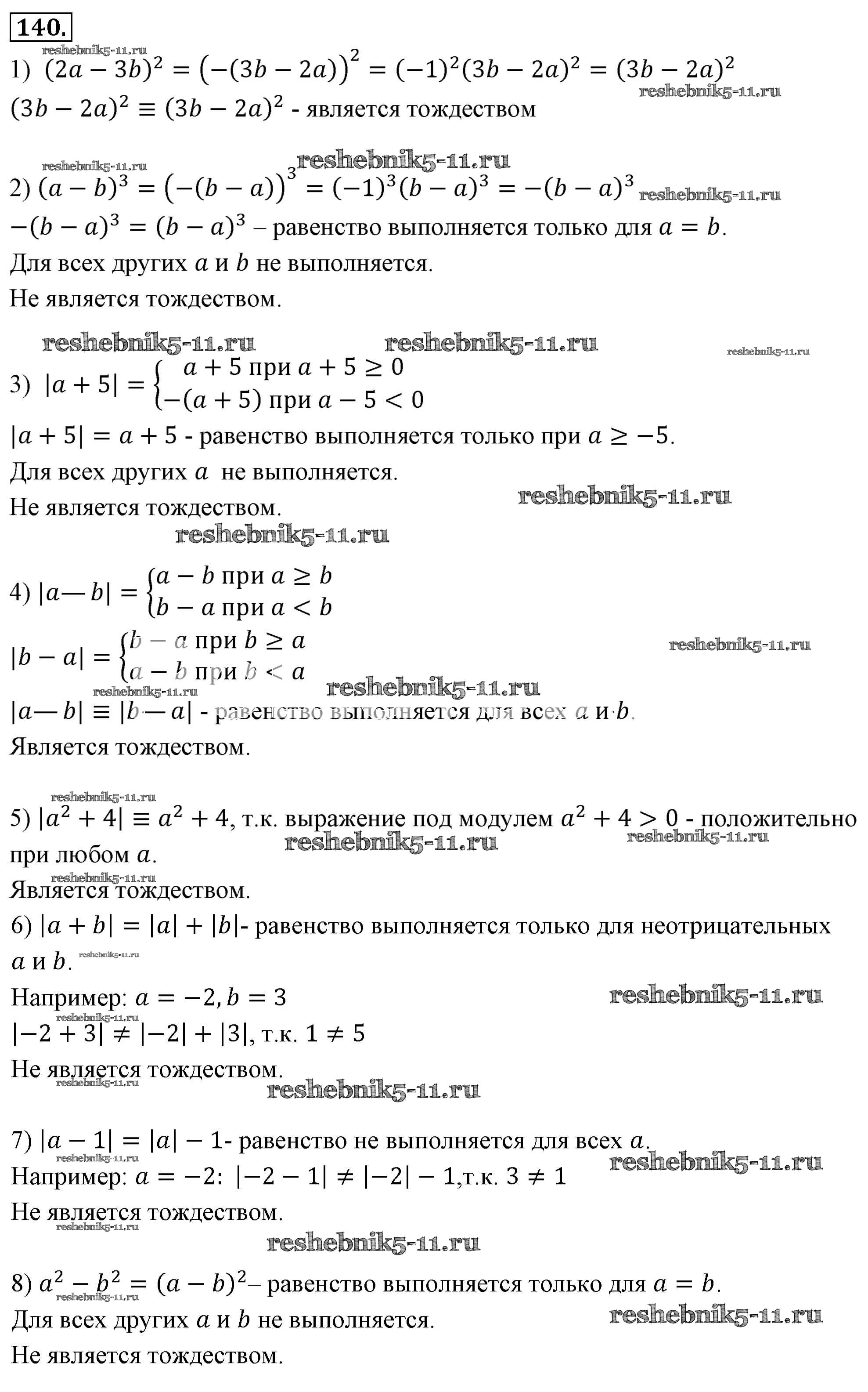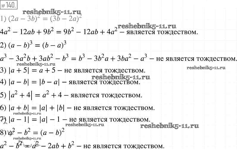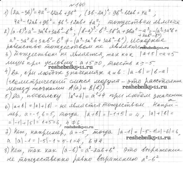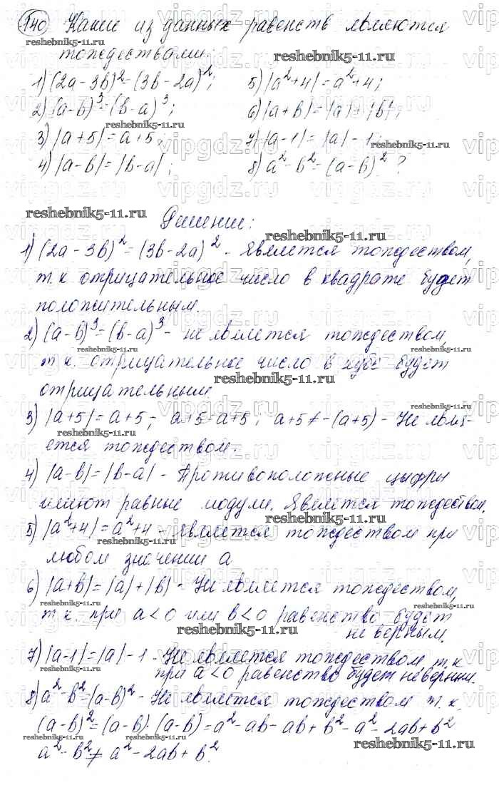 Готовая домашняя работа с ответами по Алгебре за 7 класс Мерзляк, Полонский, Якир Учебник Алгоритм успеха Базовый уровень Вентана-граф 2016 ФГОС - Упражнения 140