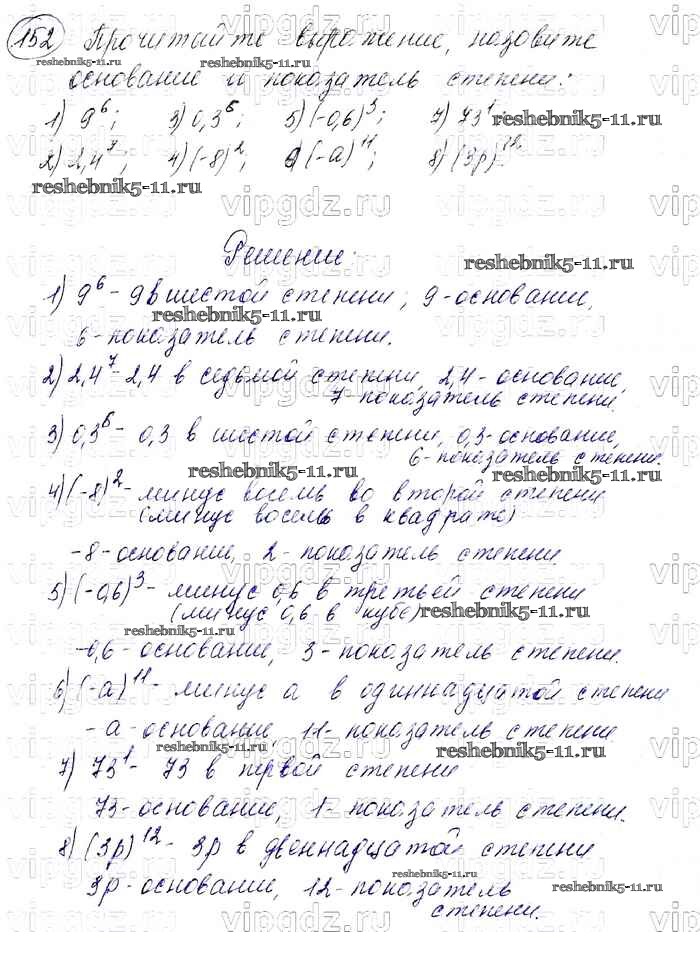 Готовая домашняя работа с ответами по Алгебре за 7 класс Мерзляк, Полонский, Якир Учебник Алгоритм успеха Базовый уровень Вентана-граф 2016 ФГОС - Упражнения 152