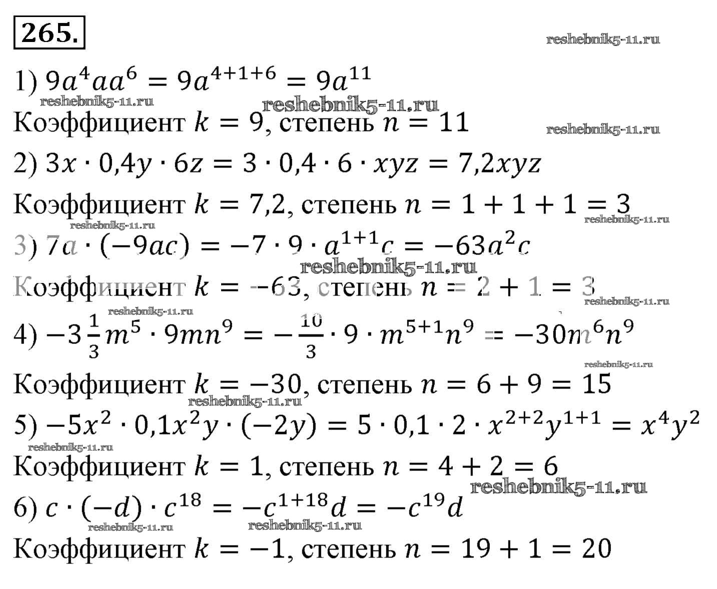 Готовая домашняя работа с ответами по Алгебре за 7 класс Мерзляк, Полонский, Якир Учебник Алгоритм успеха Базовый уровень Вентана-граф 2016 ФГОС - Упражнения 265