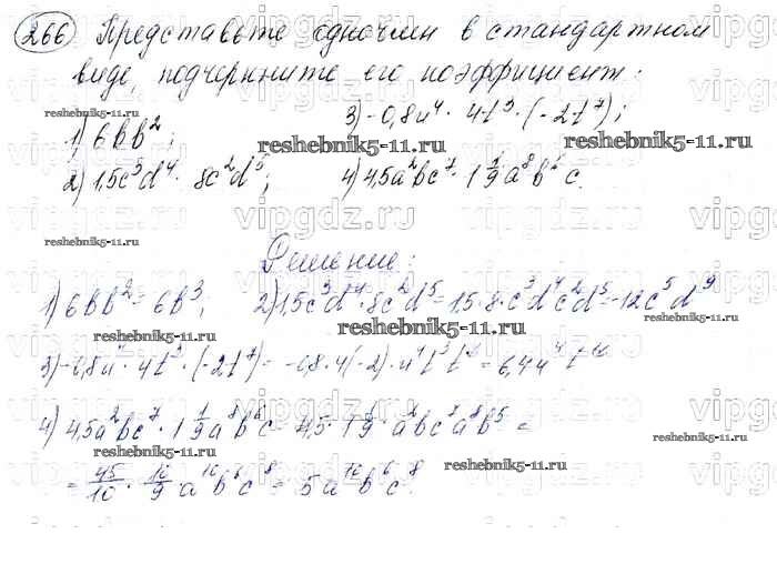 Готовая домашняя работа с ответами по Алгебре за 7 класс Мерзляк, Полонский, Якир Учебник Алгоритм успеха Базовый уровень Вентана-граф 2016 ФГОС - Упражнения 266