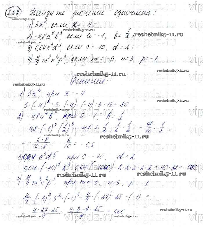 Готовая домашняя работа с ответами по Алгебре за 7 класс Мерзляк, Полонский, Якир Учебник Алгоритм успеха Базовый уровень Вентана-граф 2016 ФГОС - Упражнения 267