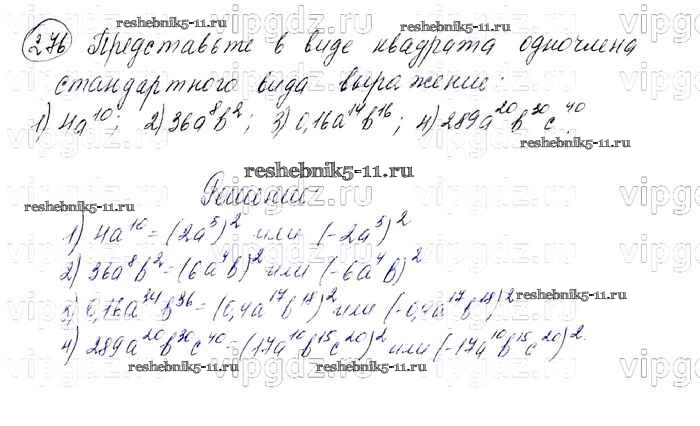 Готовая домашняя работа с ответами по Алгебре за 7 класс Мерзляк, Полонский, Якир Учебник Алгоритм успеха Базовый уровень Вентана-граф 2016 ФГОС - Упражнения 276