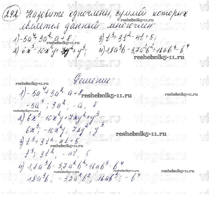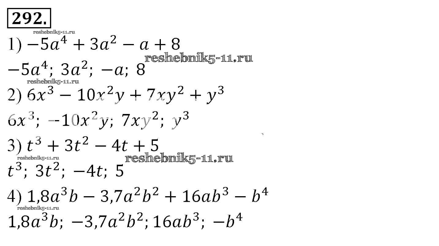 Готовая домашняя работа с ответами по Алгебре за 7 класс Мерзляк, Полонский, Якир Учебник Алгоритм успеха Базовый уровень Вентана-граф 2016 ФГОС - Упражнения 292