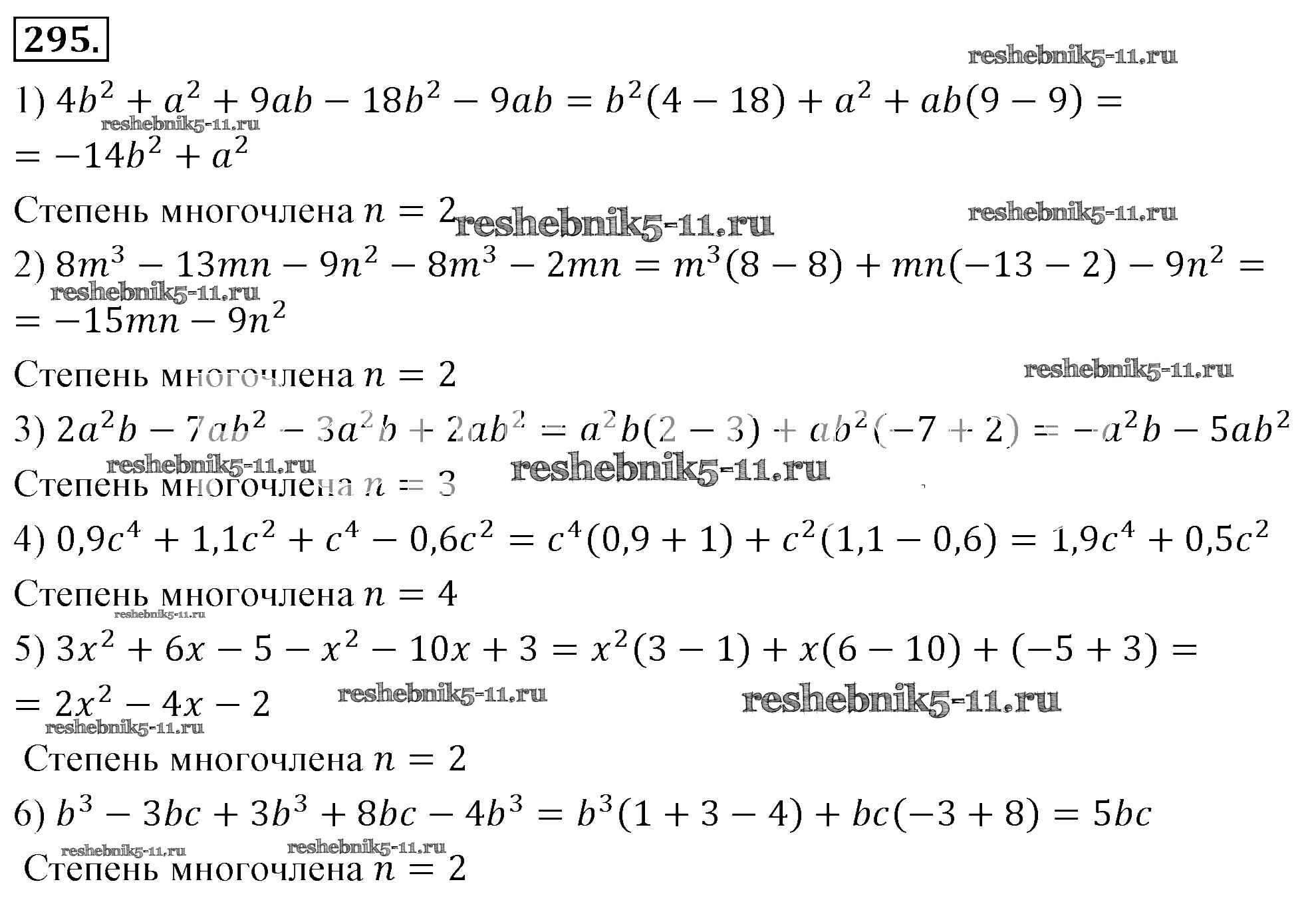 Готовая домашняя работа с ответами по Алгебре за 7 класс Мерзляк, Полонский, Якир Учебник Алгоритм успеха Базовый уровень Вентана-граф 2016 ФГОС - Упражнения 295