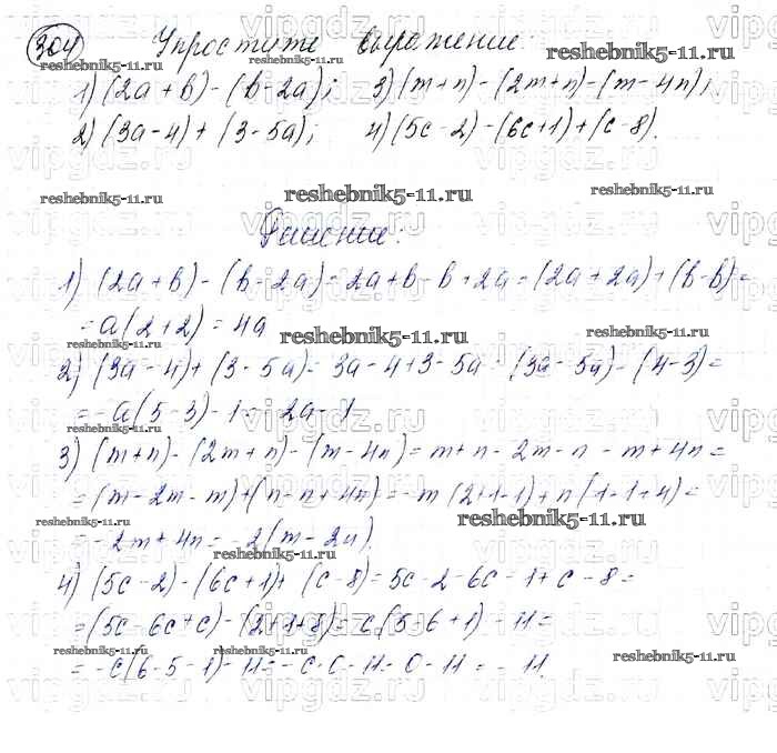 Готовая домашняя работа с ответами по Алгебре за 7 класс Мерзляк, Полонский, Якир Учебник Алгоритм успеха Базовый уровень Вентана-граф 2016 ФГОС - Упражнения 304