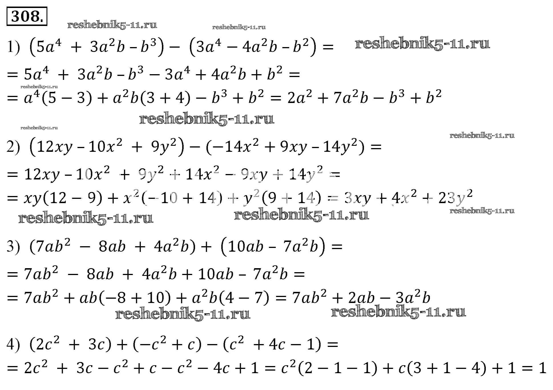 Готовая домашняя работа с ответами по Алгебре за 7 класс Мерзляк, Полонский, Якир Учебник Алгоритм успеха Базовый уровень Вентана-граф 2016 ФГОС - Упражнения 308