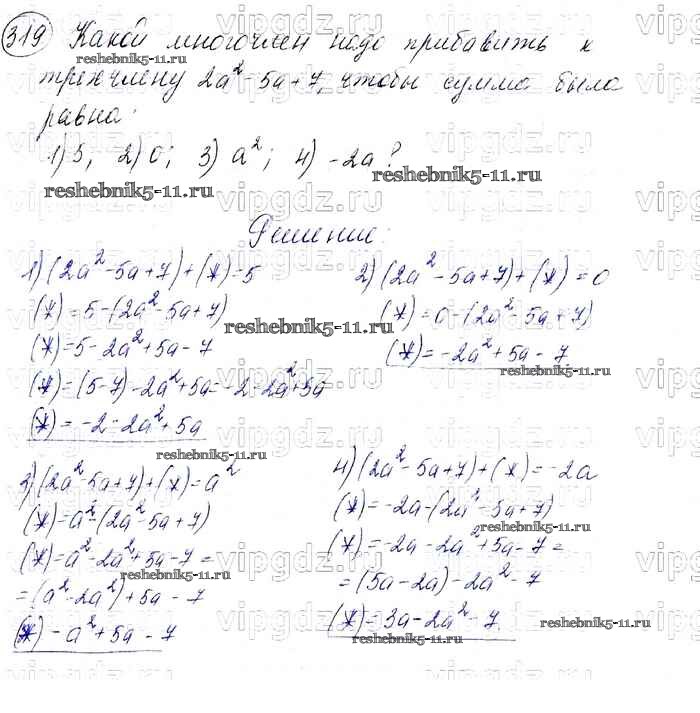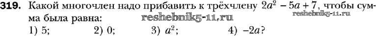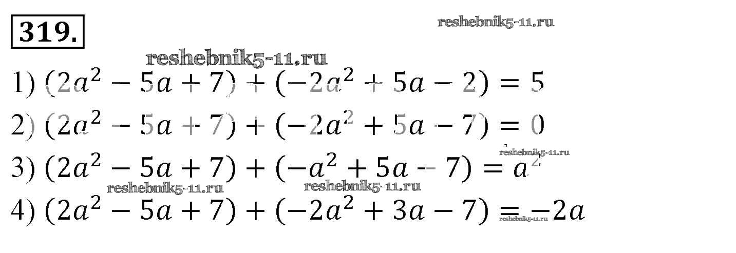 Готовая домашняя работа с ответами по Алгебре за 7 класс Мерзляк, Полонский, Якир Учебник Алгоритм успеха Базовый уровень Вентана-граф 2016 ФГОС - Упражнения 319