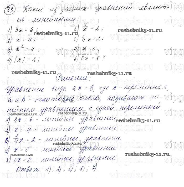 Готовая домашняя работа с ответами по Алгебре за 7 класс Мерзляк, Полонский, Якир Учебник Алгоритм успеха Базовый уровень Вентана-граф 2016 ФГОС - Упражнения 33