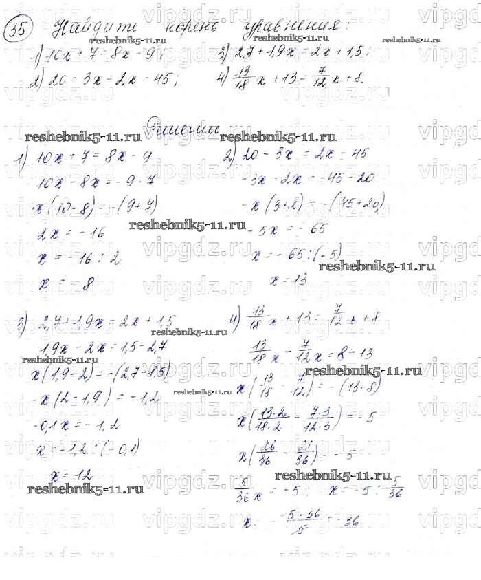 Готовая домашняя работа с ответами по Алгебре за 7 класс Мерзляк, Полонский, Якир Учебник Алгоритм успеха Базовый уровень Вентана-граф 2016 ФГОС - Упражнения 35