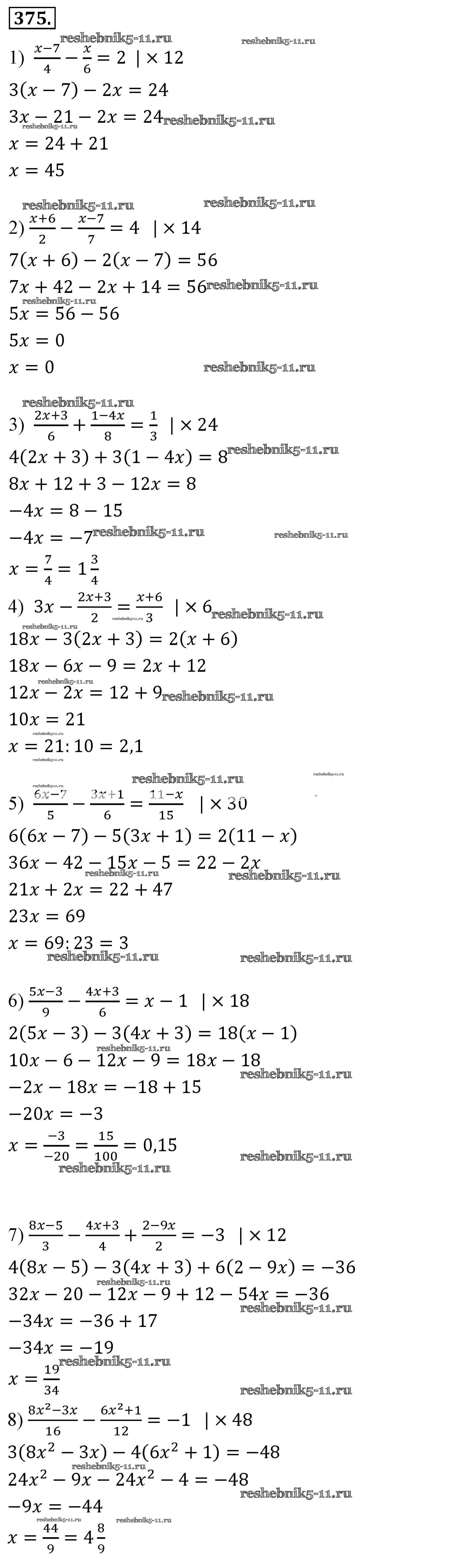 Готовая домашняя работа с ответами по Алгебре за 7 класс Мерзляк, Полонский, Якир Учебник Алгоритм успеха Базовый уровень Вентана-граф 2016 ФГОС - Упражнения 375